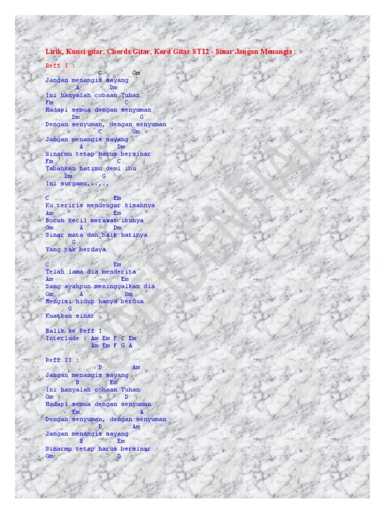 Selamat datang kembali lagi di db chord, website informasi terupdate lirik dan chord . Layanan mobile dari situs entertainment terbesar indonesia, kapanlagi.com. G em hadapi dengan senyuman. C am bila ketetapan tuhan Selamat menikmati kemudahan mencari chord dan lirik lagunya .